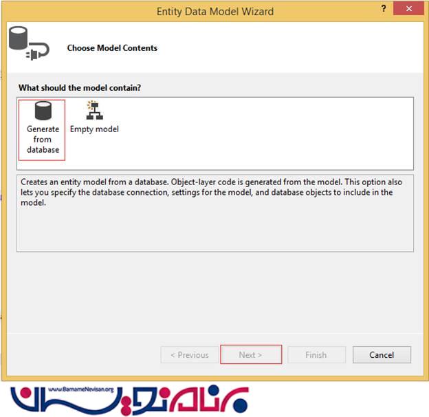 مرحله 2 : یک Entity Data Model اضافه کنید.