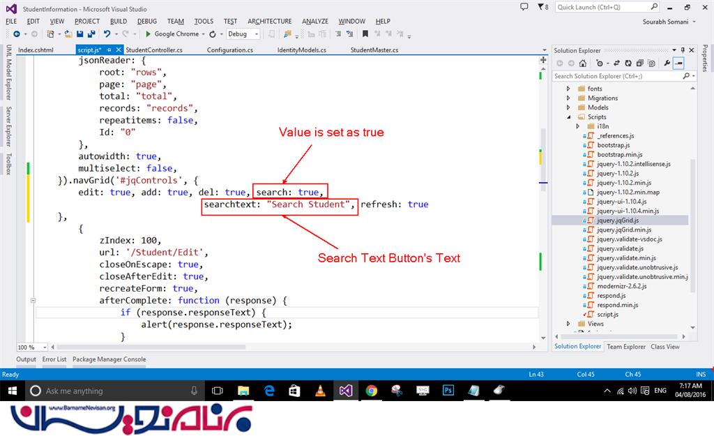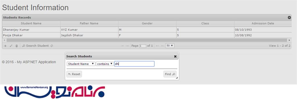 چهارشنبه 14 مهر 1395دراین مقاله یاد خواهید گرفت که چگونه می توانید با استفاده از JqGrid در MVC جستجو را انجام دهید.