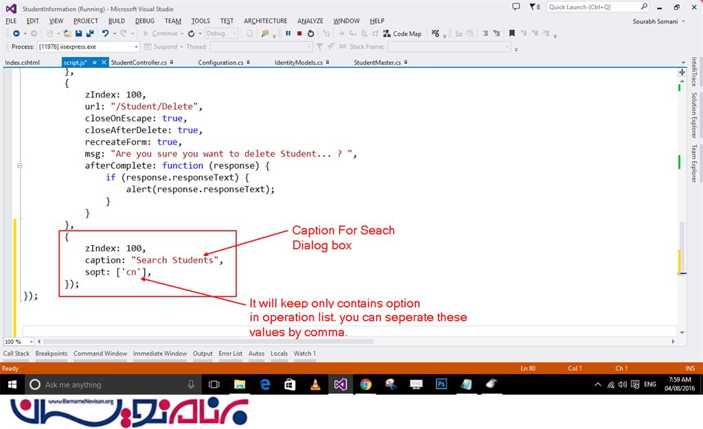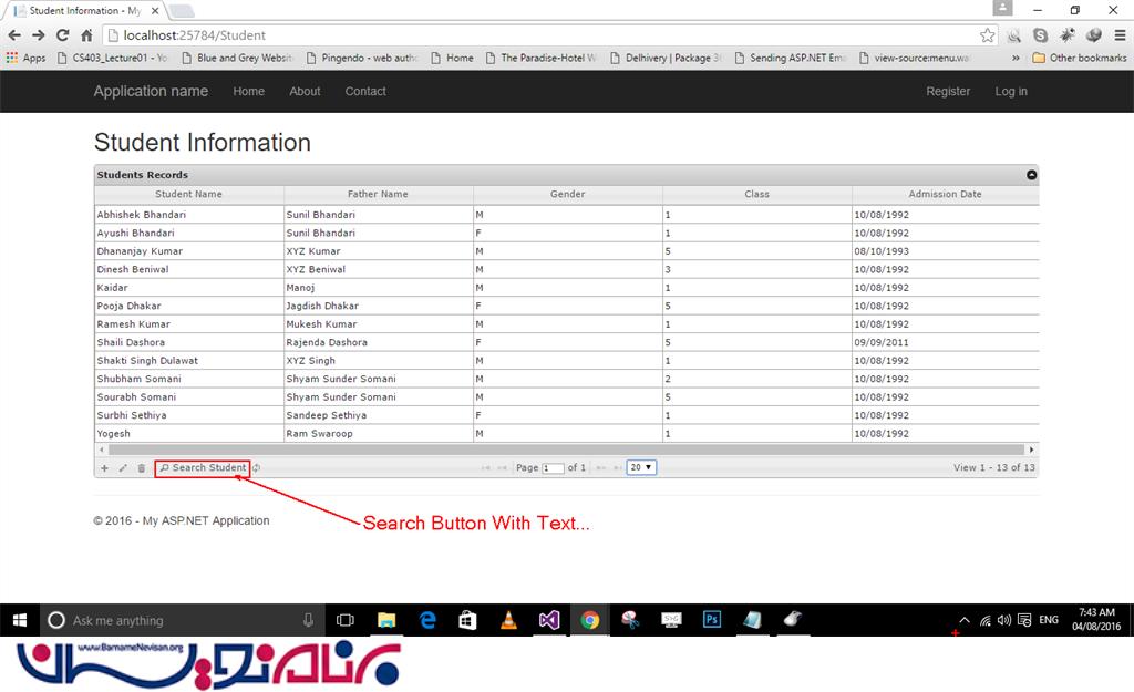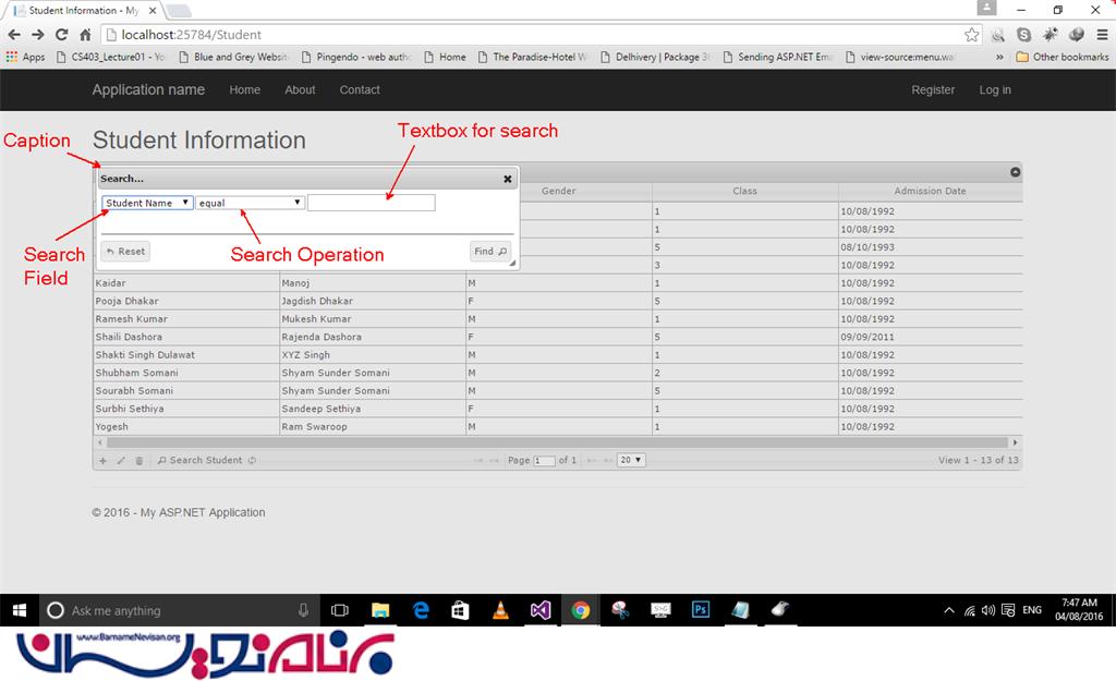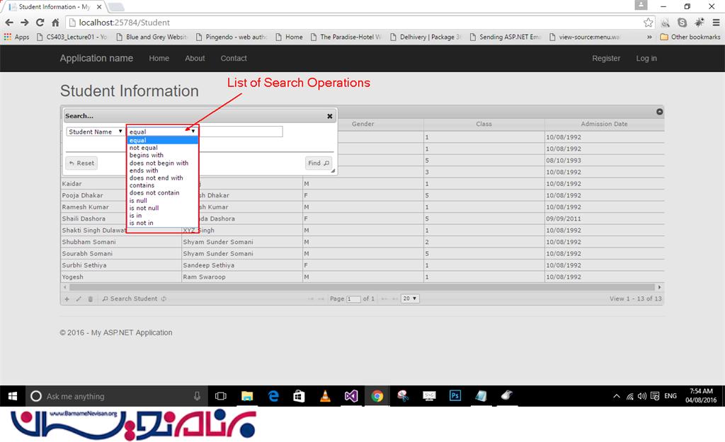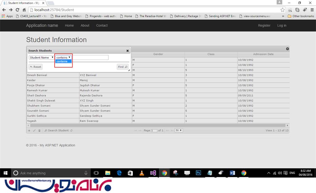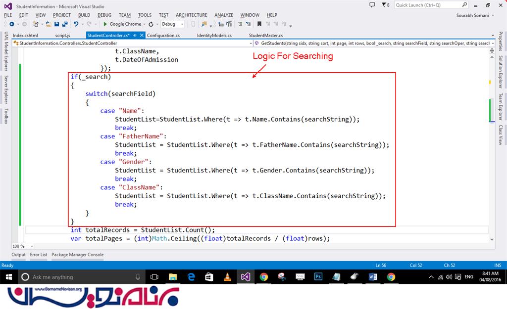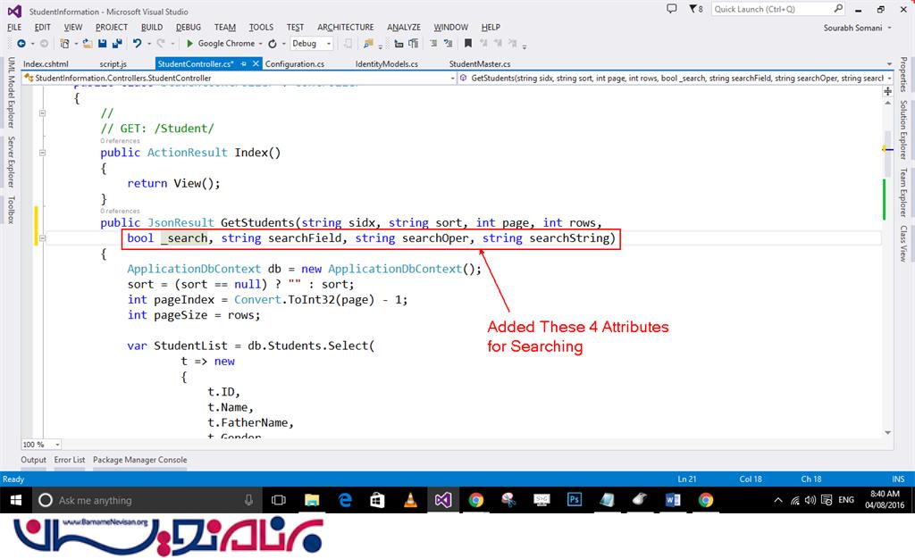 حال کد زیر را برای منطق جستجو کردن در متد GetStudent action بنویسید.