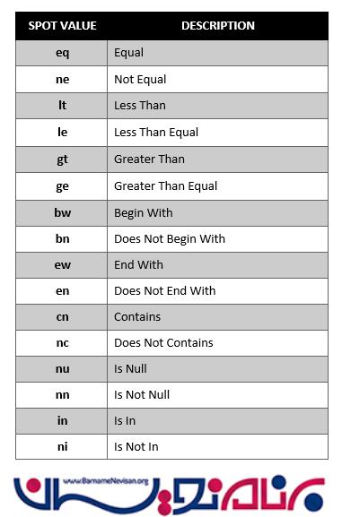 توضیح مقادیر Spot: توضیح مقادیر همه ی Spot ها در زیر آمده است: