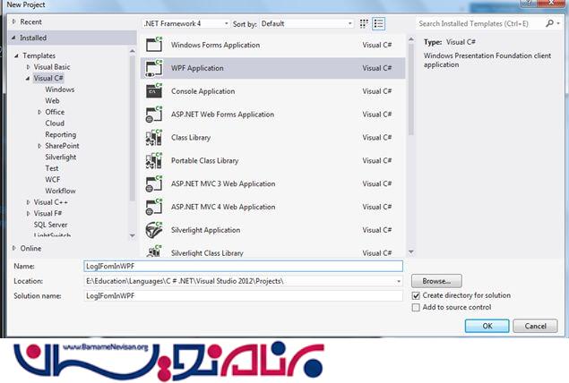 2-به قسمت New project بروید و WPF application را مطابق شکل زیر انتخاب کنید.