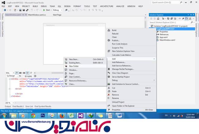 3-به قسمت Solution Explorer بروید و یک پوشه ی جدید ایجاد کنید. (مراحل کار در تصویر موجود است .)