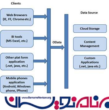 بنابراین OData یک روش مشترک برای کاربران فراهم می آورد تا به منابع داده دسترسی پیدا کنند . همپچنین OData به ما اجازه می دهد تا یک سرویس را یک بار بنویسیم و کاربران زیادی از اطلاعات آن به شیوه های مختلف استفاده کنند.