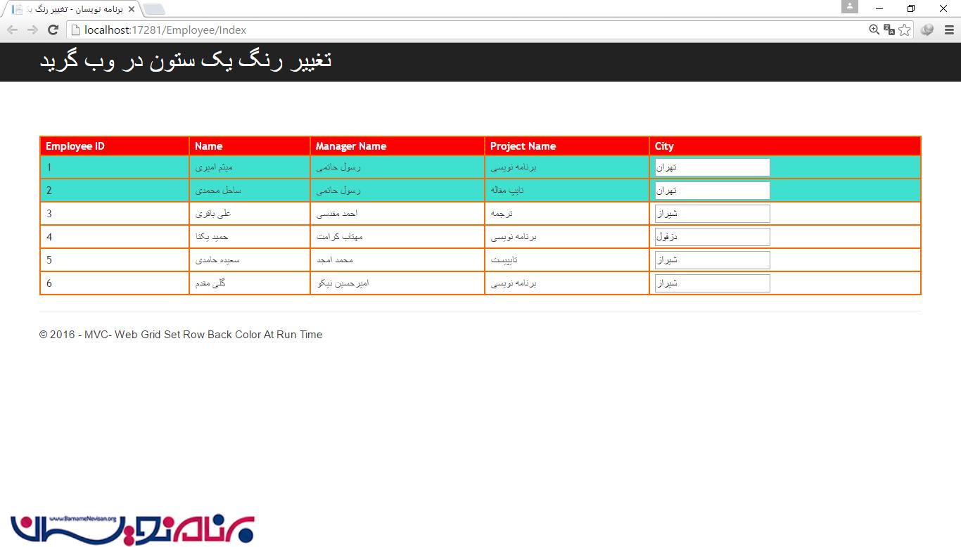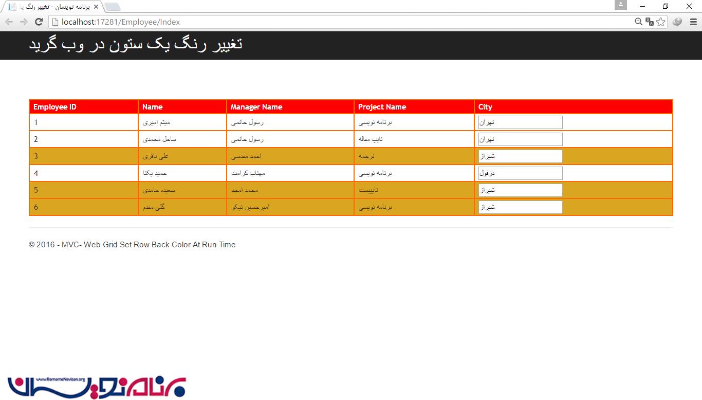 در این مقاله می خواهیم به بررسی نحوه ی عوض کردن رنگ یک سطر از WebGrid بپردازیم. مراحل کار به صورت زیر هستند: