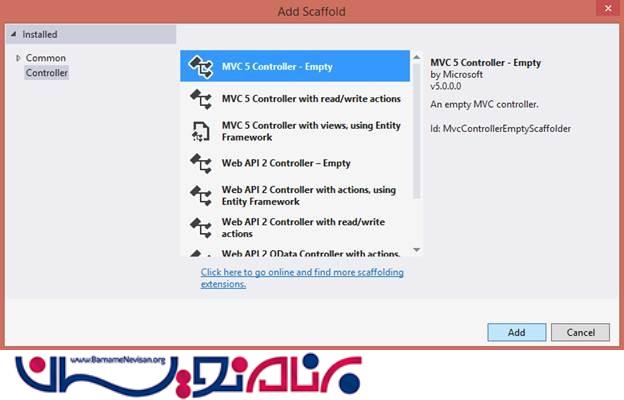 حالا یک View به نام Index.cshtml اضافه کنید.