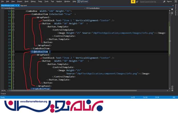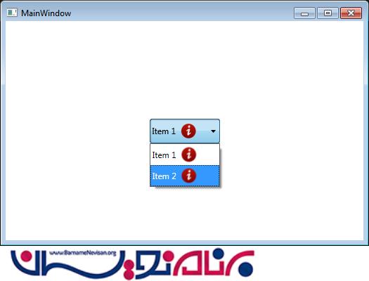 مرحله چهارم: یک combobox با نام ‘MainWindow.xaml’ به صفحه auto generated اضافه کنید که دارای :