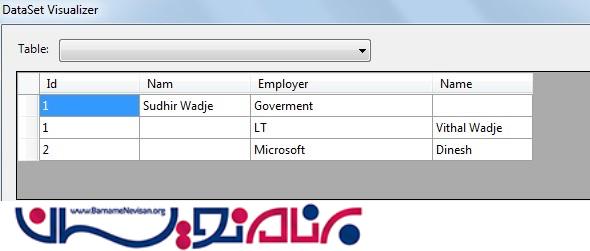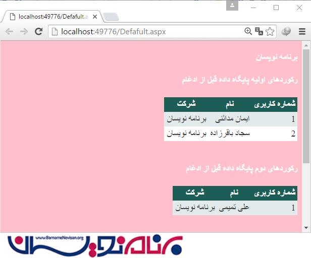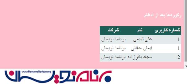 تا این مرحله ما دو جدول را در یک جدول ادغام کرده ایم و رکوردها به صورت زیر خواهند بود: