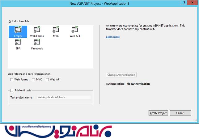 یکی از تفاوت های قابل توجه بین JavaScript و توسعه ی برنامه های .NET ، نیاز به حضور (و یا عدم حضور ) یک کامپایلر است. به عنوان مثال، نقطه ی شروع یک سرور ساده Katana یک پروژه ی Visual Studio است. اگر چه ما همچنین می توانیم با حداقل نوع پروژه ها نیز شروع به کار کنیم : Empty ASP.NET Web Application