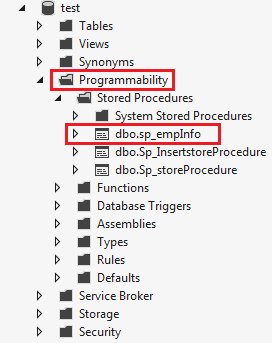 - دیتابیس را باز کنید و به پوشه ی Stored Procedures که در پوشه یProgrammability قرار دارد بروید.( شما میتوانید SP هایتان را در آنجا مشاهده کنید)