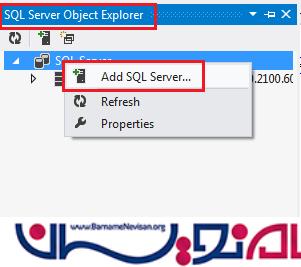 روی منوی View کلیک کرده و SQL Server Object Explorer را باز کنید( در ورژن های قبل از VS 2012 اسم آن Server Explorer بود)