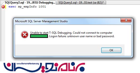 خطای زیر هنگامی رخ میدهد که شما سعی در دیباگ SP ها از راه دور میکنید.