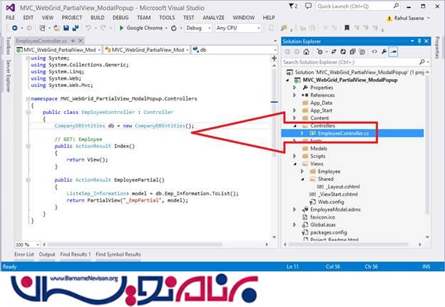 در این مقاله اطلاعاتی که می خواهیم نمایش بدهیم را در یک Partial View ریخته و سپس Partial View را در قالب یک Modal Popup ایجاد کرده و نمایش می دهیم. اطلاعاتی که می خواهیم نمایش بدهیم از پایگاه داده می آیند و با استفاده از یک web grid بر روی صفحه قرار می گیرند.