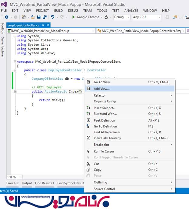 حالا تکه کد زیر را به EmployeeController پروژه اضافه کنید.
