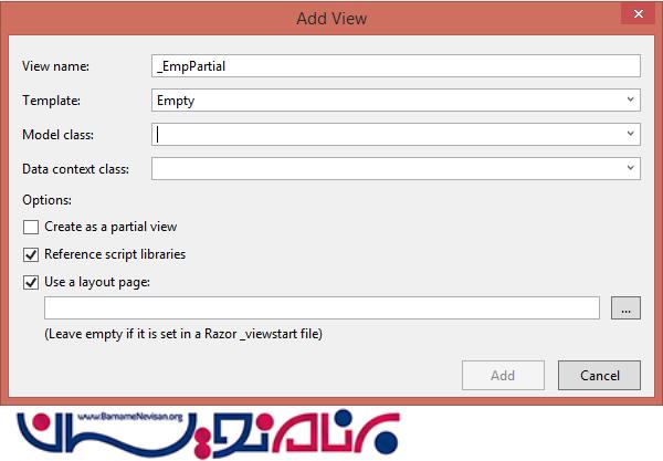 حالا یک partial view در داخل Views و پوشه ی Employee ایجاد کنید.