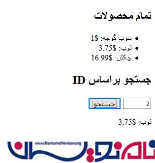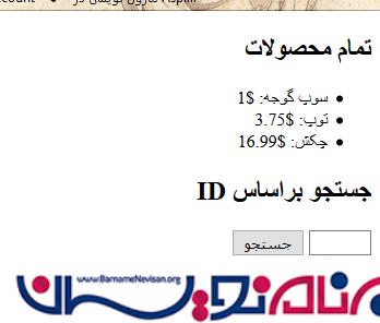برای گرفتن محصول توسط ID ، ID را وارد کنید و روی دکمه ی جستجو کلیک کنید.