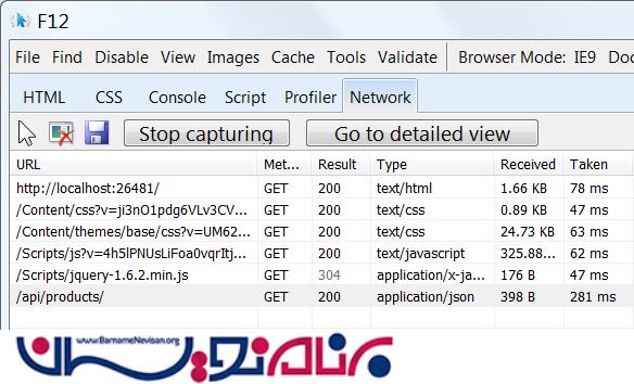 استفاده از F12 برای نمایش درخواست/پاسخ HTTP :