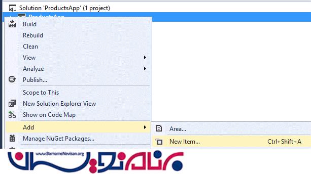 در Solution Explorer ، روی Project راست کلیک کنید و Add را انتخاب کنید و New Item را انتخاب کنید.