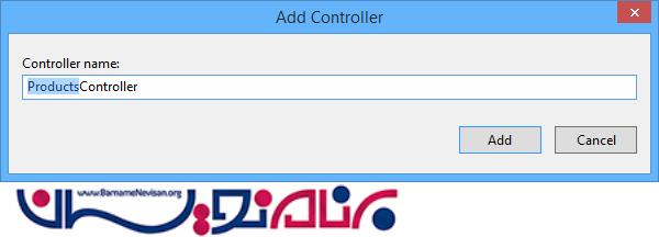 در Add Controller ، نام Controller را "ProductsController" بگذارید ، سپس روی دکمه ی ADD کلیک کنید.