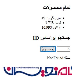 برای گرفتن محصول به وسیله ی ID ، یک درخواست HTTP GET به "/api/products/id" ارسال کنید که Id در اینجا product ID می باشد.