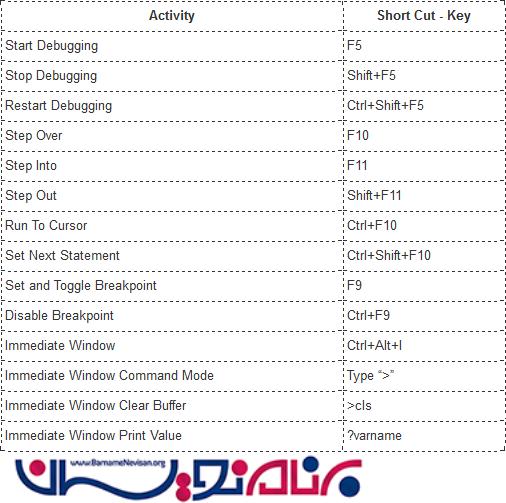 Short Cut .14های دیباگ کردن: