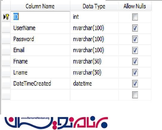 -یک جدول به نام Login در پایگاه داده ایجاد کنید.
