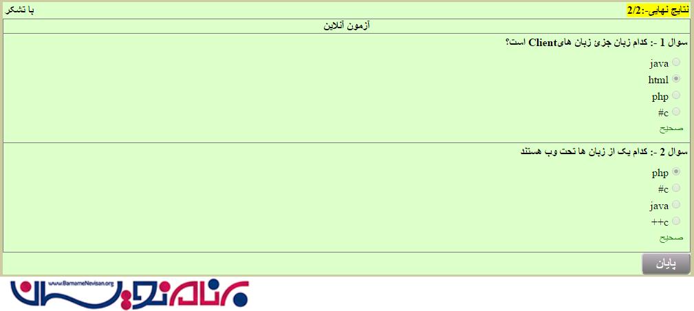 دوشنبه 21 تیر 1395در این مقاله یک آزمون آنلاین با استفاده از jQuery ایجاد میکنم که در این آزمون چند سوال و چند پاسخ ارائه میشود و در آخر نتایج را به ما نشان می دهد.