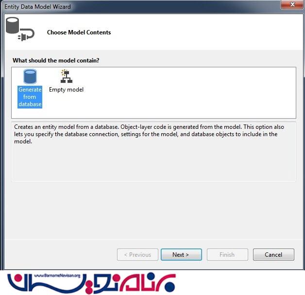 در مرحله بعدی Generate from database را انتخاب کنید.