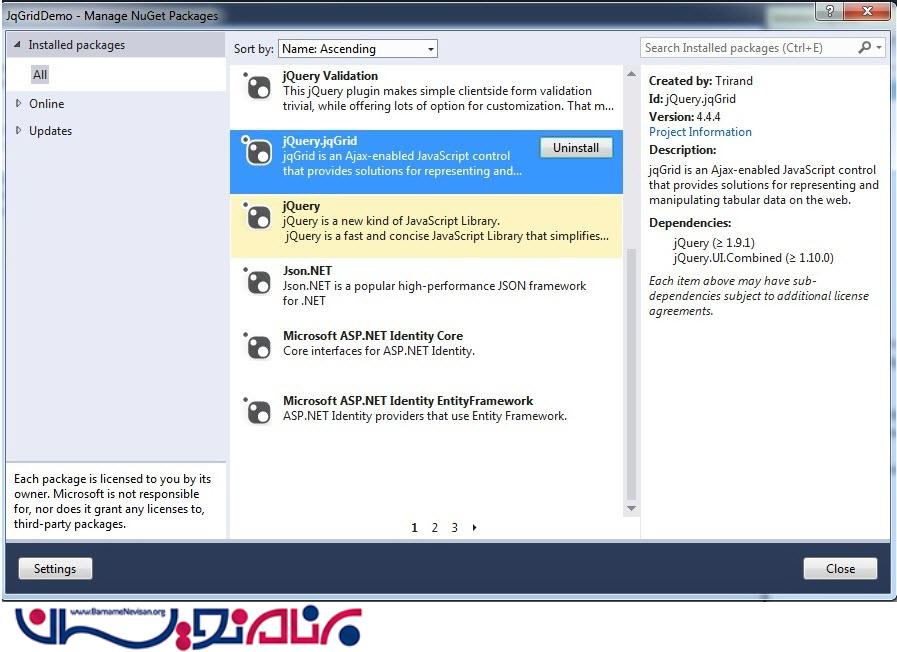 درمرحله بعد jQGrid را از nuget دریافت میکنیم.