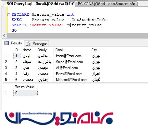 برای نمایش داده ها در GridView یک stored procedure به نام “GetStudentInfo“ ایجاد میکنیم.