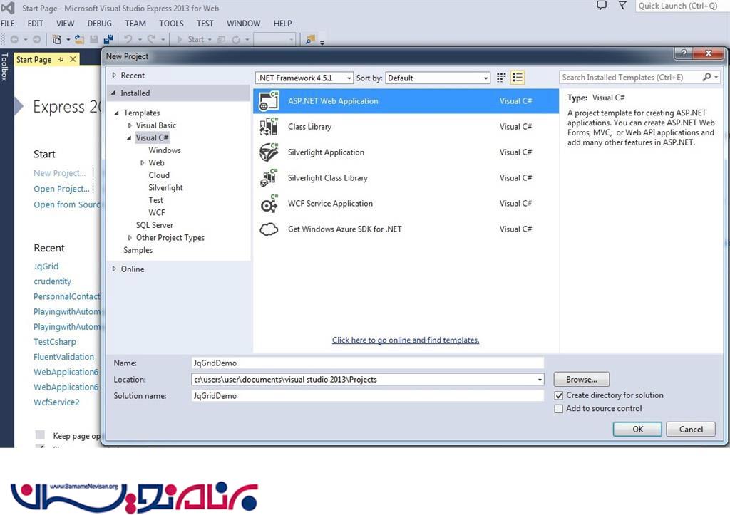 یک پروژه ASP.NET MVC Web Application. ایجاد میکنیم.