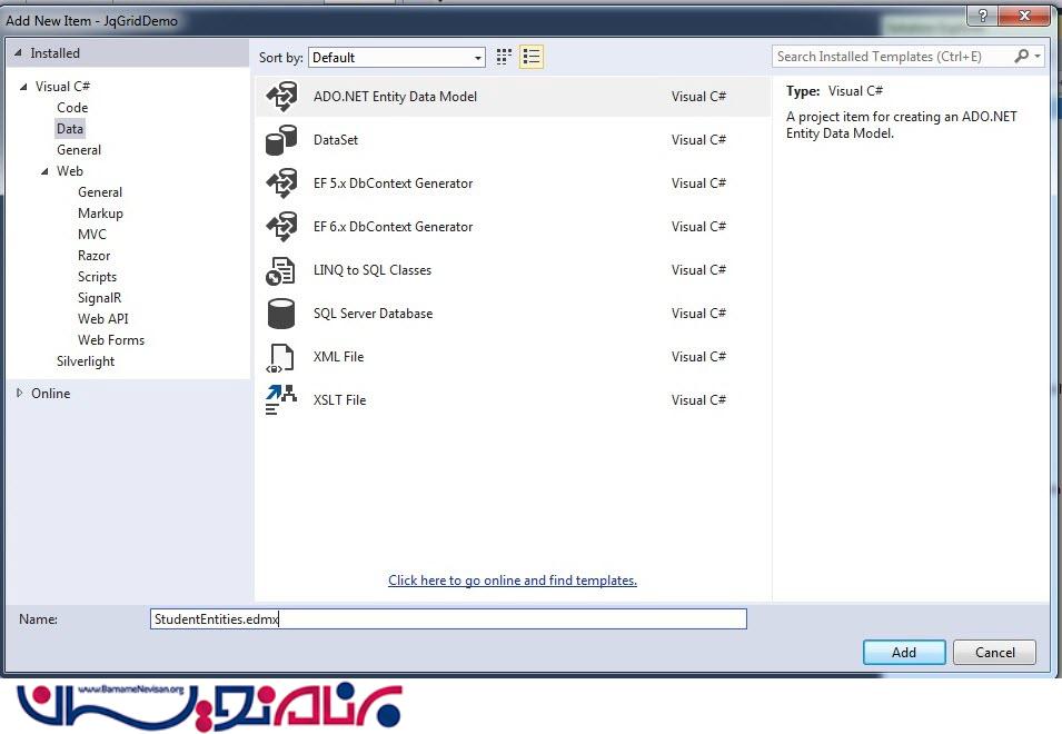 ایجاد jQGrid با استفاده از Entity Framework در MVC