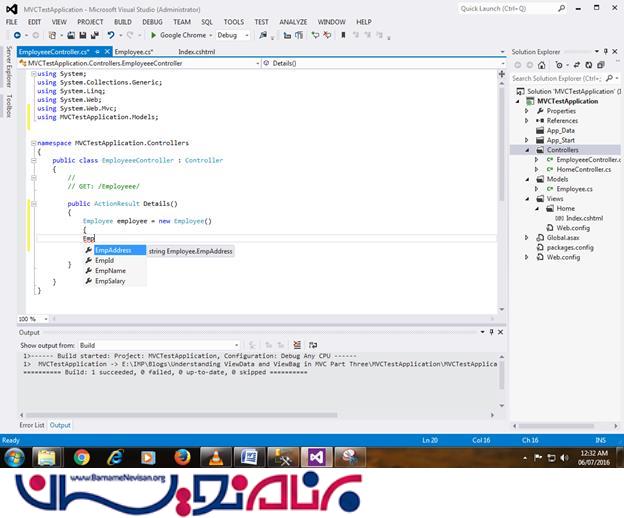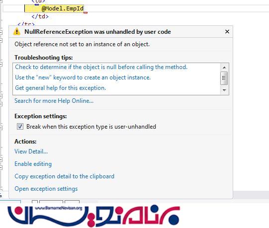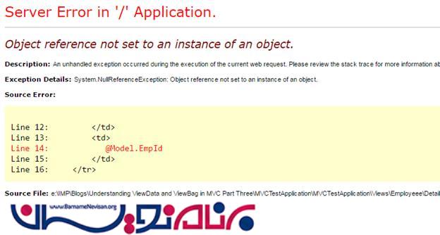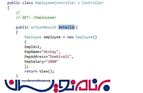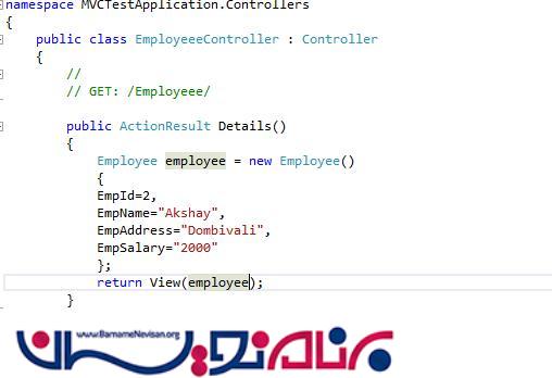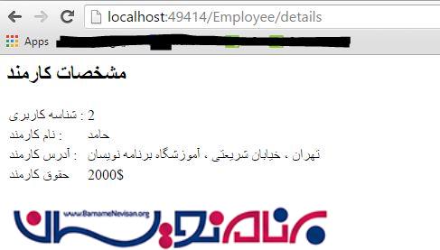 همانطور که در کد Controller مشاهده می کنید ، ما مقدار Employee را به view انتقال نداده ایم ، به همین دلیل است که ما مقدار NULL دریافت میکردیم.