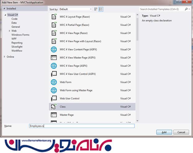 یک کلاس با نام Employee.cs را در فولدر Model اضافه میکنیم .