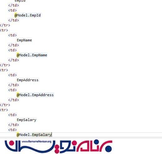 ما اینجا داده های با نام های EmpId, EmpName, EmpAddress و EmpSalary داریم .