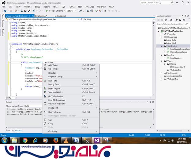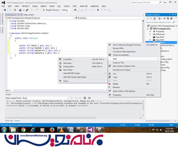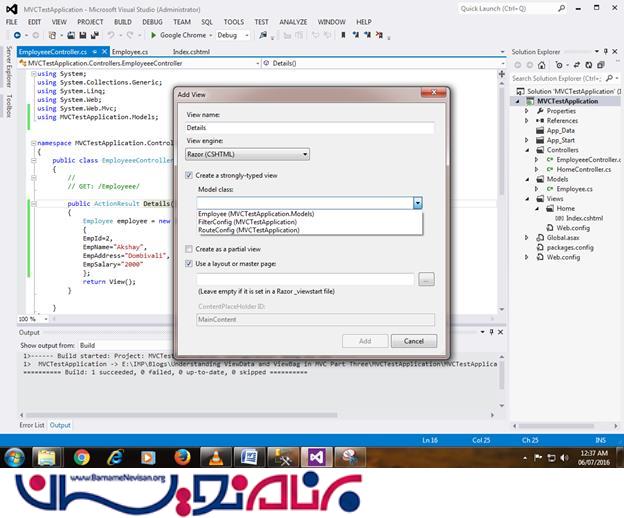 فولدر را Views مشاهده کنید . یک فولدر با نام Employee nv,k فولدر Views ساخته شده است ، Employee نام Controller ما خواهد بود .