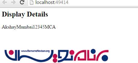 برنامه را اجرا میکنیم و Controller name و Action Methode Name را در آدرس اضافه میکنیم .
