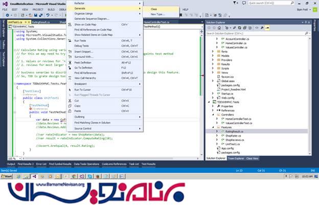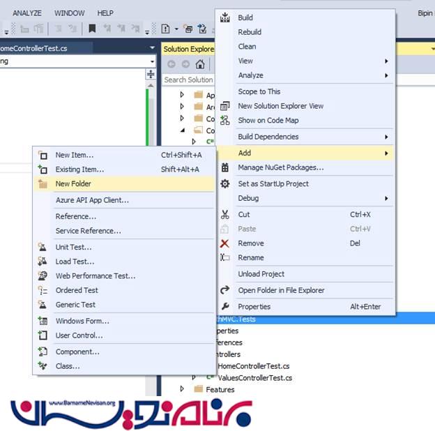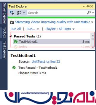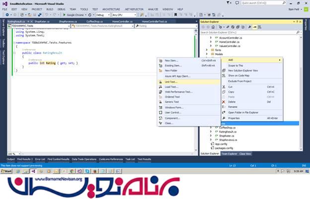 حالا یک Test Class به نام “UnitTest1.cs” به پروژه اضافه کنید.