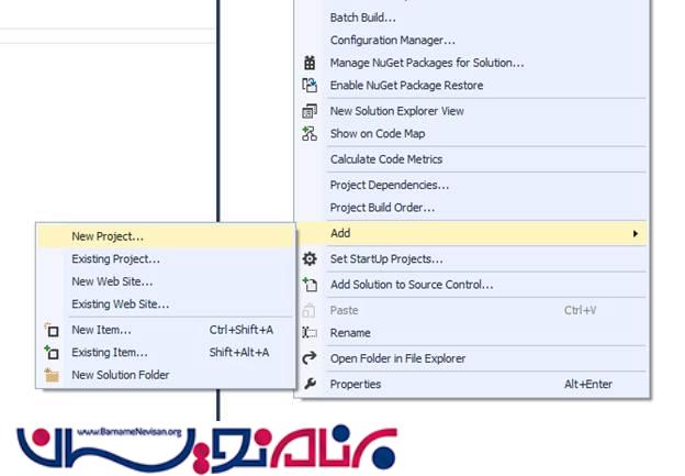 بر روی Solution کلیک راست کنید و یک پروژه جدید ایجاد کنید.