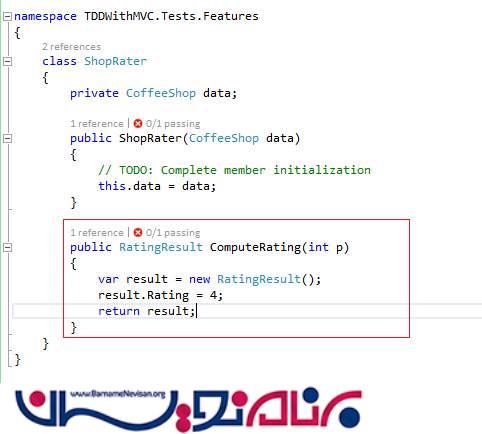 اما این کار برای امتحان یک Unit test چندان نیز مناسب نیست. هر بار ما نمی توانیم برای درخواست متغیر ها، درخواست بدهیم تا متغیر های ورودی را تغییر داده و سپس تست ها و شرایط بیشتری را اضافه کنیم. برای این کار ما نیاز داریم تا کدهای ComputeRating را تغییر بدهیم تا برنامه به شیوه درست کار کند. در ادامه این کار ما باید ابتدا مطمئن شویم که کدها، شرایط و ویژگی ها را به صورت مناسب اضافه کرده ایم و کد را دچار مشکل و نقص نکرده باشیم. در حقیقت همین موضوع، ارزش حقیقی تست را مشخص می کند.