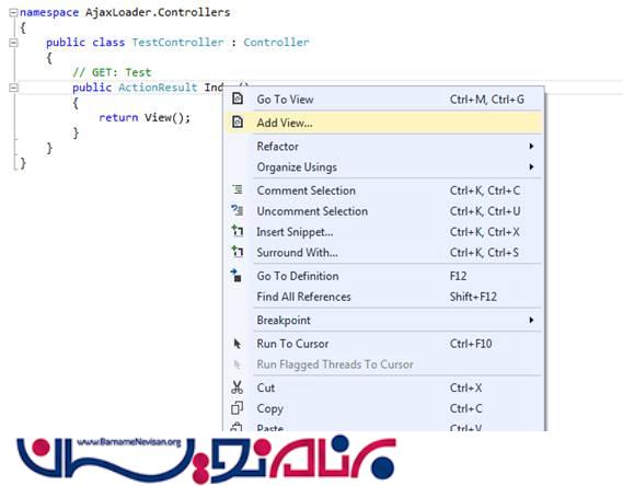 View را با کلیک راست کردن بر روی ActionResult ، به پروژه اضافه کنید .