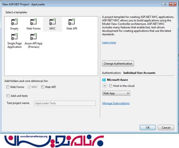 مرحله دوم : در قسمت Template Type یک پروژه MVC را انتخاب کنید . ASP.Net MVC این اجازه را به شما می دهد که برنامه های خود را بر مبنای معماری Model-view-controller بسازید .