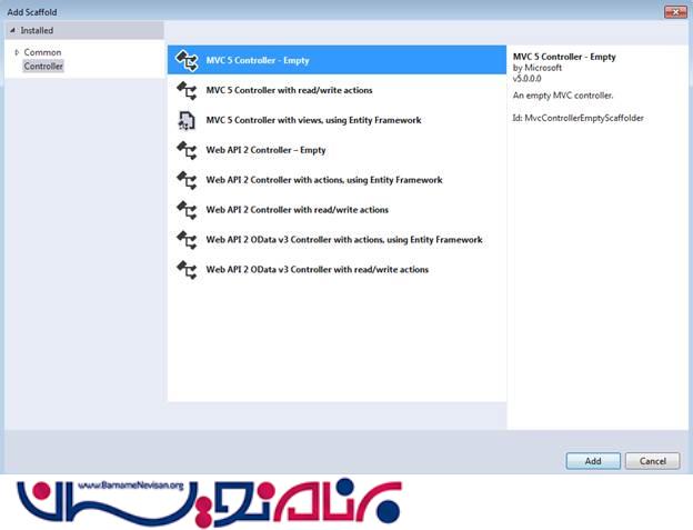 در قسمت "Add Scaffold" , گزینه MVC 5 Controller – Empty را انتخاب کنید .