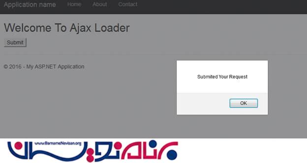 در نهایت ، برنامه را اجرا کنید و درخواستی را برای سرور ارسال کنید ، خواهید دید که تا رسیدن پاسخ ما از سمت سرور ، AJAX Loader فعال خواهد بود .