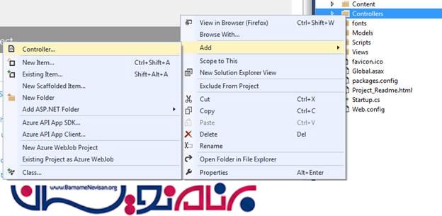 روی Controller کلیک راست کرده و یک Controller را به پروژه اضافه کنید .
