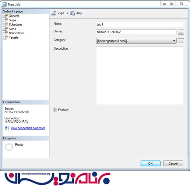 4.حال یک صفحه باز می شود که به طور خودکار بر روی Genral قرار دارد در این قسمت شما می توانید یک نام برایJob و یک توضیح مختصر برای آن قرار دهید.
