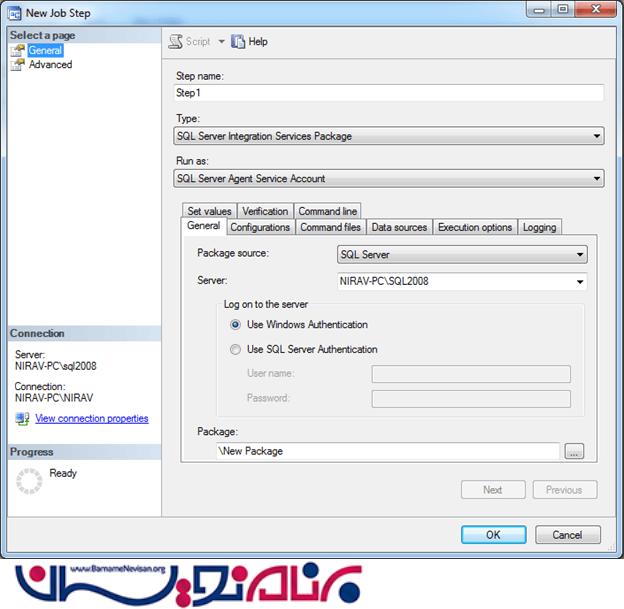 6.در قسمت Step Name میتوان نام خود را وارد کنید ، قسمت بعدی "Type" نوع Job شما تعیین می کند و درون لیست کشویی گزینه های زیادی برای دسترسی وجود دارد.