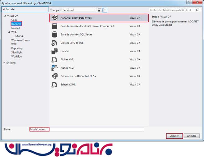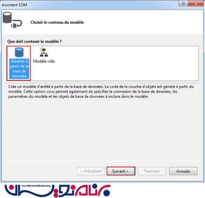 در این مرحله ، تولید Entity Data Model را دنبال می کنیم .