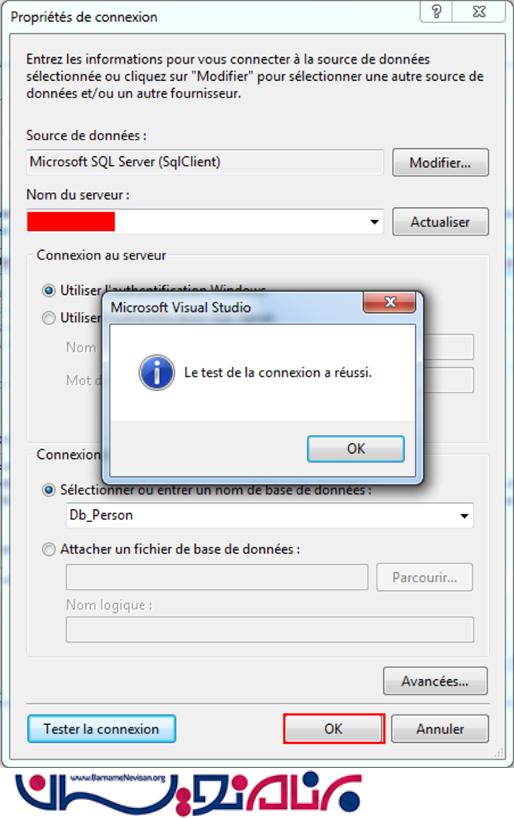 حال نام سرور و نام پایگاه داده خود را وارد کنید .