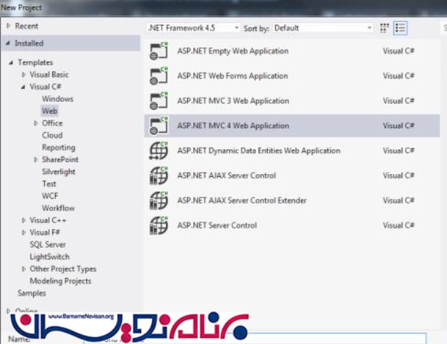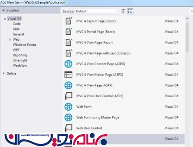 ابتدا یک پروژه از نوع ASP.NET MVC با نام “Web Grid in Mvc” ایجاد می کنیم .