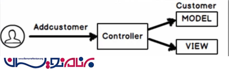 در MVC ، اگر کاربر از مرورگر یک درخواست ارسال کند ، ابتدا این درخواست به Controller میآید . Cotroller آن را به View مناسب ارسال میکند . در خواست داده ها به کاربر می رود و Controller به کلاس Model می رود ، به این دلیل که model ها همیشه اطلاعات را حمل میکنند . همان طور که اشاره شد ، اگر ما یک لایه را تغییر دهیم ، تمامی لایه های دیگر دست نخورده باقی می مانند . این یکی از ویژگی های ویژه MVC است که آن را بی نظیر میکند . اینجا ، نمودار دوم فایل Controller و فایل های ضمیمه شده به آن را ، توضیح می دهد ،همچنین دارای یک فولدر Model میباشد که شامل تدارکات کلاس customer است .